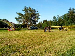 C’est Jérôme qui a eu l’honneur d’inaugurer le 1er atterrissage d’un ULM multi-axe sur la piste de St-Julien-Puy-Lavèze, avec la participation de Gérard et Antoine qui le suivaient avec le pendulaire Nuvix-582.